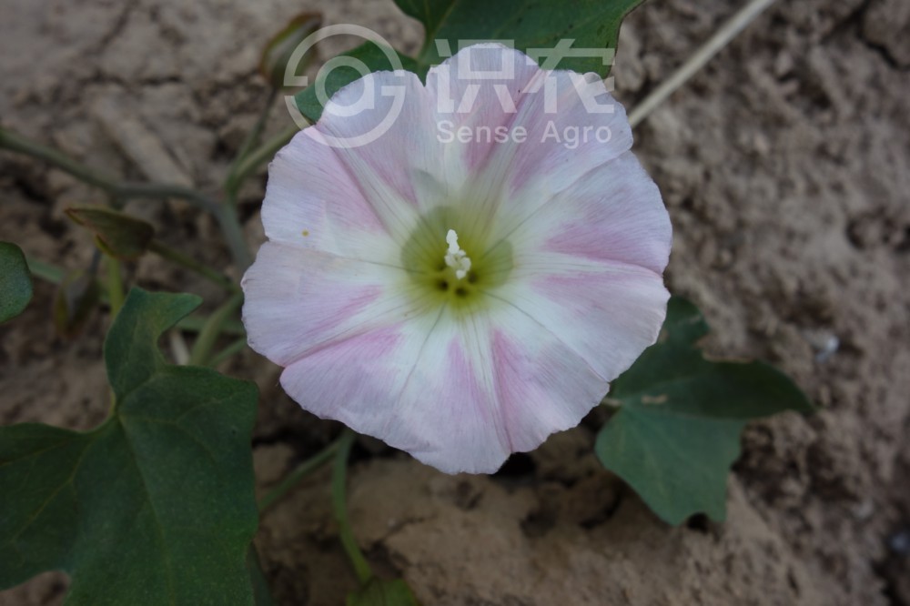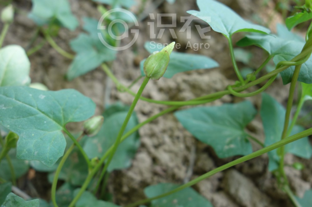 全体不被毛,植株通常矮小,高8-30(-40)厘米,常自基部分枝,具细长白色的根。茎细,平卧,有细棱。基部叶片长圆形,长2-3(-5.5)厘米,宽1-2.5厘米,顶端圆,基部戟形,上部叶片3裂,中裂片长圆形或长圆状披针形,侧裂片近三角形,全缘或2-3裂,叶片基部心形或戟形;叶柄长1-5厘米。花腋生,1朵,花梗长于叶柄,有细棱;苞片宽卵形,长0.8-1.6厘米,顶端钝或锐尖至渐尖;萼片长圆形,长0.6-1厘米,顶端钝,具小短尖头,内萼片稍短;花冠淡紫色或淡红色,钟状,长2-4厘米,冠檐近截形或微裂;雄蕊近等长,花丝基部扩大,贴生花冠管基部,被小鳞毛;子房无毛,柱头2裂,裂片长圆形,扁平。蒴果卵球形,长约1厘米,宿存萼片与之近等长或稍短。种子黑褐色,长4-5毫米,表面有小疣。