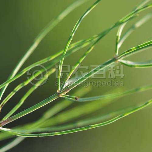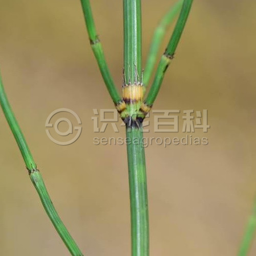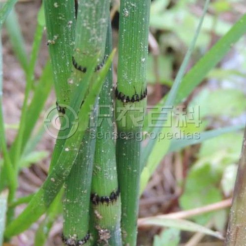 根茎直立,横走或斜升,黑棕色,节和根疏生黄棕色长毛或光滑无毛。地上枝多年生。枝一型,高20-60厘米,中部直径1-3毫米,节间长2-6厘米,绿色,主枝多在下部分枝,常形成簇生状。主枝有脊5-14条,脊的背部弧形,有一行小瘤或有浅色小横纹;鞘筒狭长达1厘米,下部灰绿色,上部灰棕色;鞘齿5-12枚,三角形,灰白色或少数中央为黑棕色,边缘(有时上部)为膜质,背部弧形,宿存,齿上气孔带明显。侧枝较硬,圆柱状,有脊5-8条,脊上平滑或有一行小瘤或有浅色小横纹;鞘齿5-8个,披针形,革质但边缘膜质,上部棕色,宿存。孢子囊穗短棒状或椭圆形,长0.5-2.5厘米,中部直径0.4-0.7厘米,顶端有小尖突,无柄。