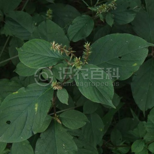 高70-120厘米;根圆柱形,直径5-10毫米,土黄色;茎有棱角或四方形,绿色或带紫色,有白色贴生或开展柔毛,或近无毛,分枝对生。叶片椭圆形或椭圆披针形,少数倒披针形,长4.5-12厘米,宽2-7.5厘米,顶端尾尖,尖长5-10毫米,基部楔形或宽楔形,两面有贴生或开展柔毛;叶柄长5-30毫米,有柔毛。穗状花序顶生及腋生,长3-5厘米,花期后反折;总花梗长1-2厘米,有白色柔毛;花多数,密生,长5毫米;苞片宽卵形,长2-3毫米,顶端长渐尖;小苞片刺状,长2.5-3毫米,顶端弯曲,基部两侧各有1卵形膜质小裂片,长约1毫米; 花被片披针形,长3-5毫米,光亮,顶端急尖,有1中脉;雄蕊长2-2.5毫米;退化雄蕊顶端平圆,稍有缺刻状细锯齿。胞果矩圆形,长2-2.5毫米,黄褐色,光滑。种子矩圆形,长1毫米,黄褐色。花期7-9月,果期9-10月。