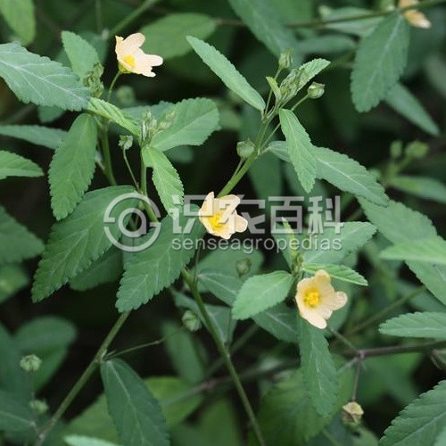 白背黄花稔(学名:Sida rhombifolia L.),双子叶植物纲,锦葵目,锦葵科,黄花稔属直立亚灌木。