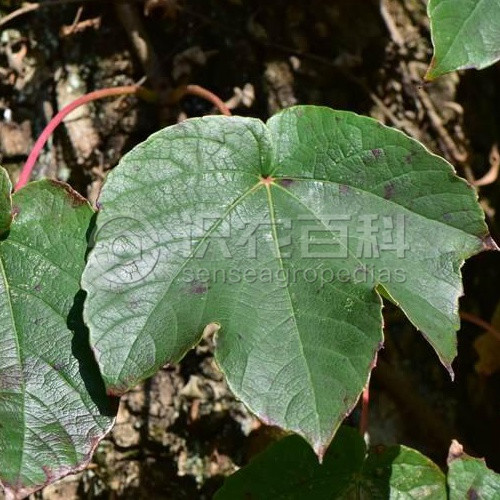 小枝圆柱形,几无毛或微被疏柔毛。卷须5-9分枝,相隔2节间断与叶对生。卷须顶端嫩时膨大呈圆珠形,后遇附着物扩大成吸盘。叶为单叶,通常着生在短枝上为3浅裂,时有着生在长枝上者小型不裂,叶片通常倒卵圆形,长4.5-17厘米,宽4-16厘米,顶端裂片急尖,基部心形,边缘有粗锯齿,上面绿色,无毛,下面浅绿色,无毛或中脉上疏生短柔毛,基出脉5,中央脉有侧脉3-5对,网脉上面不明显,下面微突出;叶柄长4-12厘米,无毛或疏生短柔毛。花序着生在短枝上,基部分枝,形成多歧聚伞花序,长2.5-12.5厘米,主轴不明显;花序梗长1-3.5厘米,几无毛;花梗长2-3毫米,无毛;花蕾倒卵椭圆形,高2-3毫米,顶端圆形;萼碟形,边缘全缘或呈波状,无毛;花瓣5,长椭圆形,高1.8-2.7毫米,无毛;雄蕊5,花丝长约1.5-2.4毫米,花药长椭圆卵形,长0.7-1.4毫米,花盘不明显;子房椭球形,花柱明显,基部粗,柱头不扩大。果实球形,直径1-1.5厘米,有种子1-3颗;种子倒卵圆形,顶端圆形,基部急尖成短喙,种脐在背面中部呈圆形,腹部中梭脊突出,两侧洼穴呈沟状,从种子基部向上达种子顶端。花期5-8月,果期9-10月。