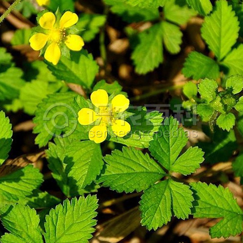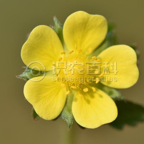 根茎短,粗壮;匍匐茎多数,长30-100厘米,有柔毛。小叶片倒卵形至菱状长圆形,长2-3.5(-5)厘米,宽1-3厘米,先端圆钝,边缘有钝锯齿,两面皆有柔毛,或上面无毛,具小叶柄;叶柄长1-5厘米,有柔毛;托叶窄卵形至宽披针形,长5-8毫米。花单生于叶腋;直径1.5-2.5厘米;花梗长3-6厘米,有柔毛;萼片卵形,长4-6毫米,先端锐尖,外面有散生柔毛;副萼片倒卵形,长5-8毫米,比萼片长,先端常具3-5锯齿;花瓣倒卵形,长5-10毫米,黄色,先端圆钝;雄蕊20-30;心皮多数,离生;花托在果期膨大,海绵质,鲜红色,有光泽,直径10-20毫米,外面有长柔毛。瘦果卵形,长约1.5毫米,光滑或具不显明突起,鲜时有光泽。花期6-8月,果期8-10月。