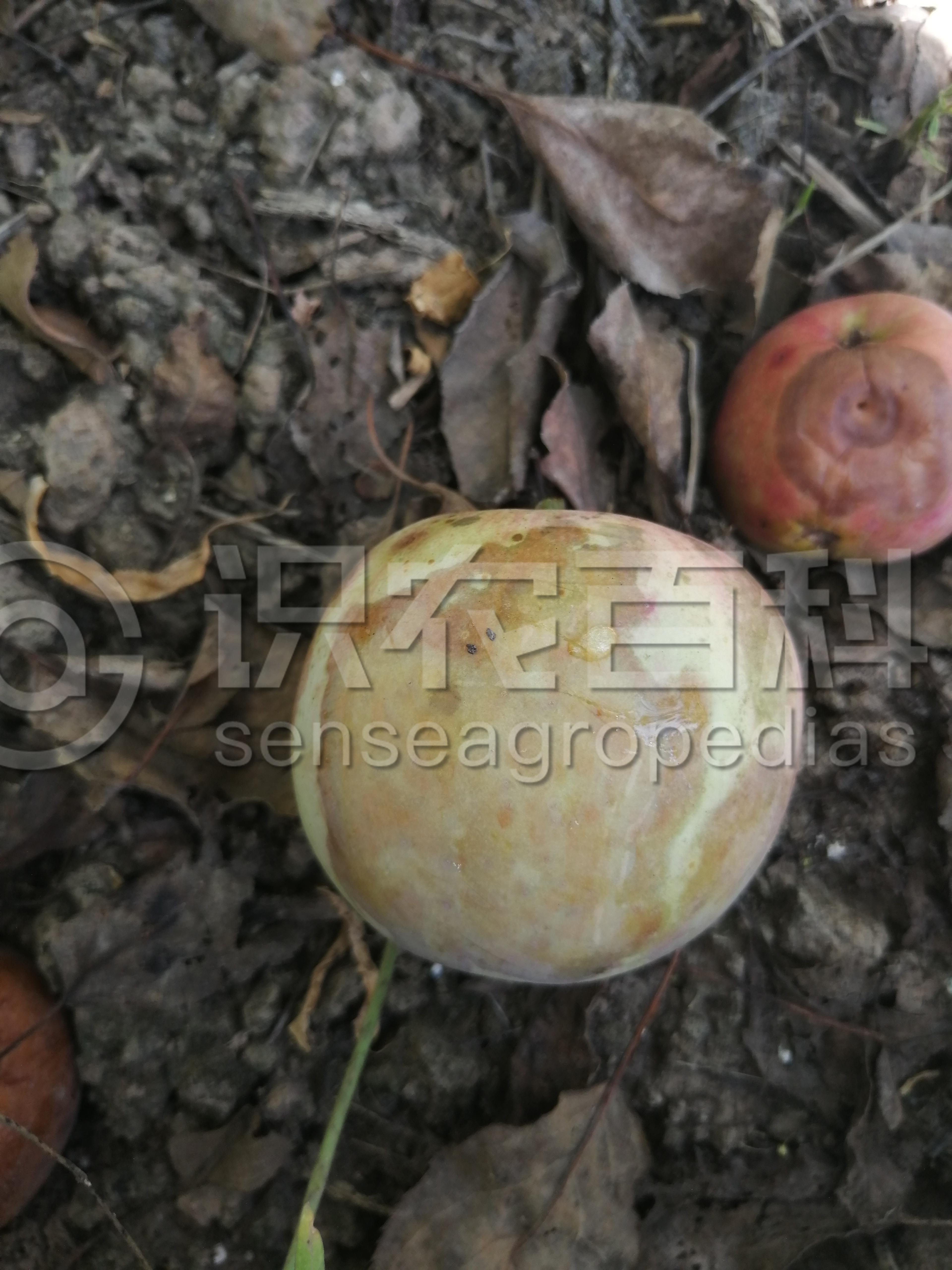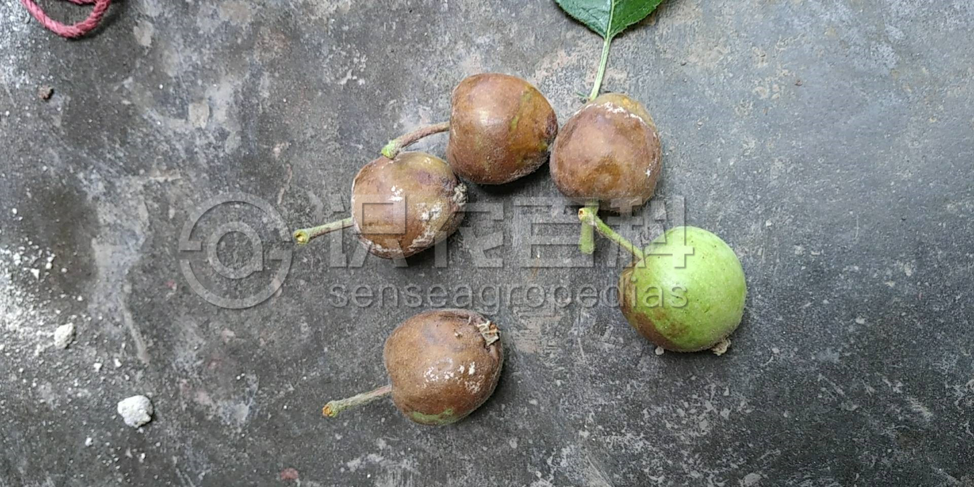 该病主要危害果实、树的根颈部及叶片。特别是在夏季高温、多雨时期。根颈部染病, 皮层出现暗褐色腐烂, 多不规则, 严重的烂至木质部, 致病部以上枝条发育变缓, 叶色淡, 叶小, 秋后叶片提前变红紫色, 落叶早, 当病斑绕树干一周时, 全树叶片调萎或干枯。叶片染病, 初呈水渍状, 后形成灰色或暗褐色不规则形病斑, 湿度大时, 全叶腐烂。果实染病, 果面形成不规则、深浅不匀的褐斑, 边缘不清晰, 呈水渍状, 致果皮果肉分离, 果肉褐变或腐烂, 湿度大时病部生有白色绵毛状菌丝体, 病果初呈皮球状, 有弹性, 后失水干缩或脱落。