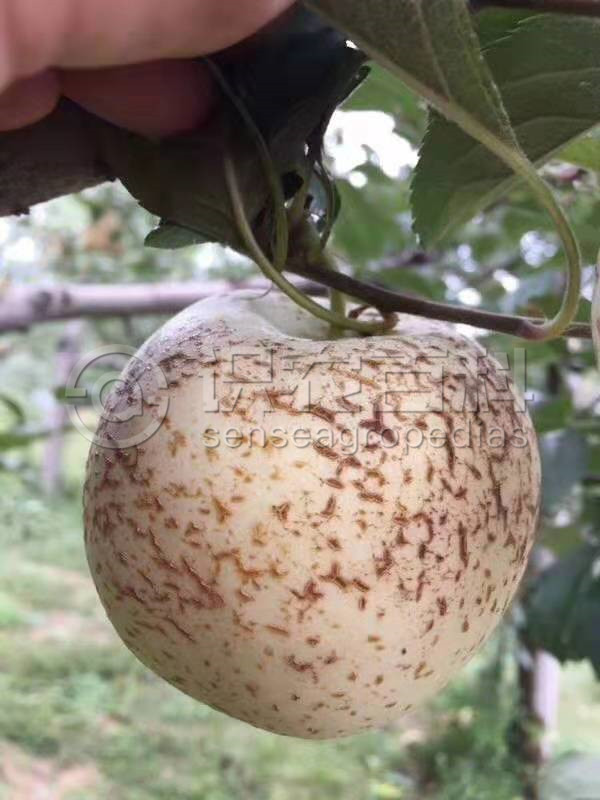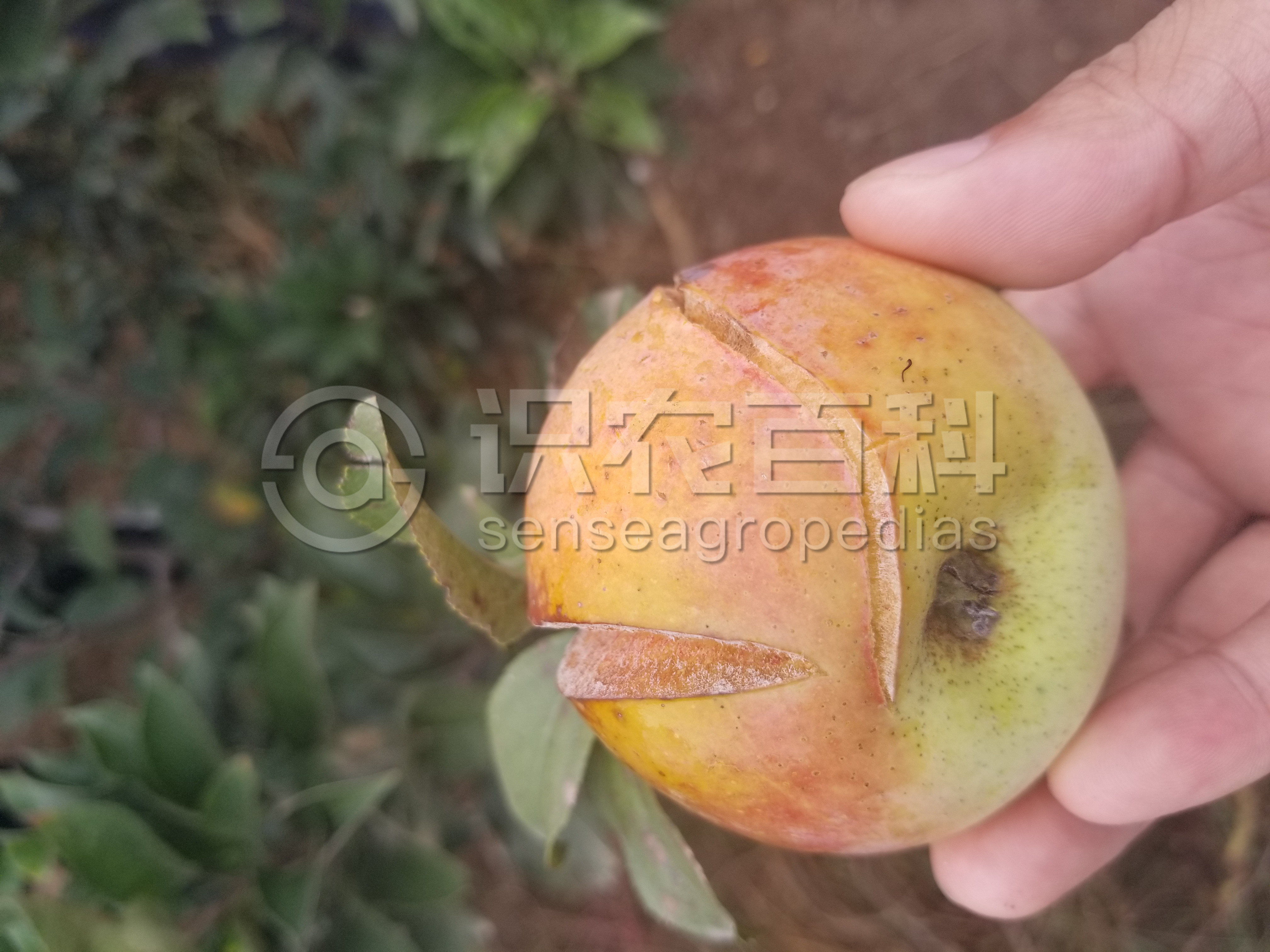 果实生长前期如果土壤过分干,果实进入转色期至近成熟期,气孔张开,果实缝合线部位细胞排列致密性差,若遇连续降雨或暴雨,导致土壤水分急剧增加,果树根系迅速吸收水分而使果实急剧膨大,果实表皮易胀裂而出现裂果。另外,药害和病虫为害的部位,常有部分果皮停止生长,此点将成为裂果的起裂点。果实阳面的果皮受到阳光直射后,出现细小日灼伤痕,果皮韧性降低,易出现裂果。幼树或高接树在结果初期,新梢生长旺盛,枝条直立,易造成裂果;角度开张、长势中庸的枝条上裂果少。