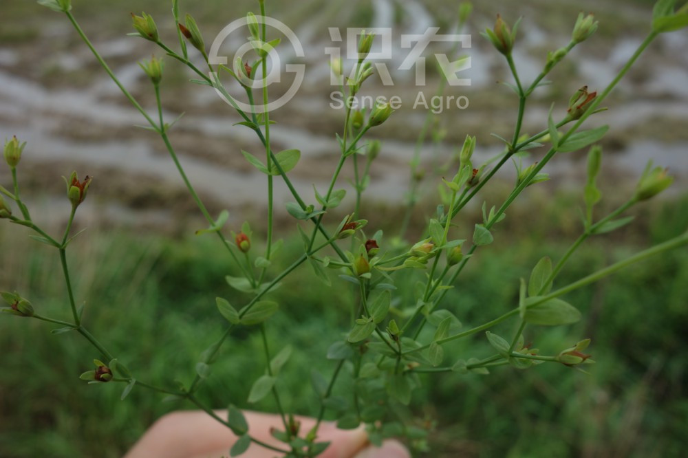 高2-45厘米。茎单一或多少簇生,直立或外倾或匍地而在基部生根,在花序下部不分枝或各式分枝,具4纵线棱,散布淡色腺点。叶无柄,叶片通常卵形或卵状三角形至长圆形或椭圆形,长0.2-1.8厘米,宽0.1-1厘米,先端近锐尖至圆形,基部心形抱茎至截形,边缘全缘,坚纸质,上面绿色,下面淡绿但有时带苍白色,具1-条基生主脉和1-2对侧脉,但无明显脉网,无边缘生的腺点,全面散布透明腺点。花序具1-30花,两岐状或多少呈单岐状,有或无侧生的小花枝;苞片及小苞片线形、披针形至叶状,微小至与叶等长。花直径4-8毫米,多少平展;花蕾圆柱状椭圆形,先端多少钝形;花梗长2-5毫米。萼片狭长圆形或披针形至椭圆形,长2-5.5毫米,宽0.5-2毫米,先端锐尖至钝形,全缘,无边缘生的腺点,全面散生有透明腺点或腺条纹,果时直伸。花瓣白色、淡黄至橙黄色,椭圆形或长圆形,长2-5毫米,宽0.8-1.8毫米,先端钝形,无腺点,宿存。雄蕊5-30枚,不成束,长约2毫米,宿存,花药黄色,具松脂状腺体。子房1室,长1.5-2毫米;花柱(2-)3 ,长0.4-1毫米,自基部离生,开展。蒴果短圆柱形至圆球形,长2.5-6毫米,宽1.3-2.8毫米,无腺条纹。种子淡黄色,圆柱形,长约0.5毫米,两端锐尖,无龙骨状突起和顶端的附属.物,全面有细蜂窝纹。花期3-月,果期6-10月。
