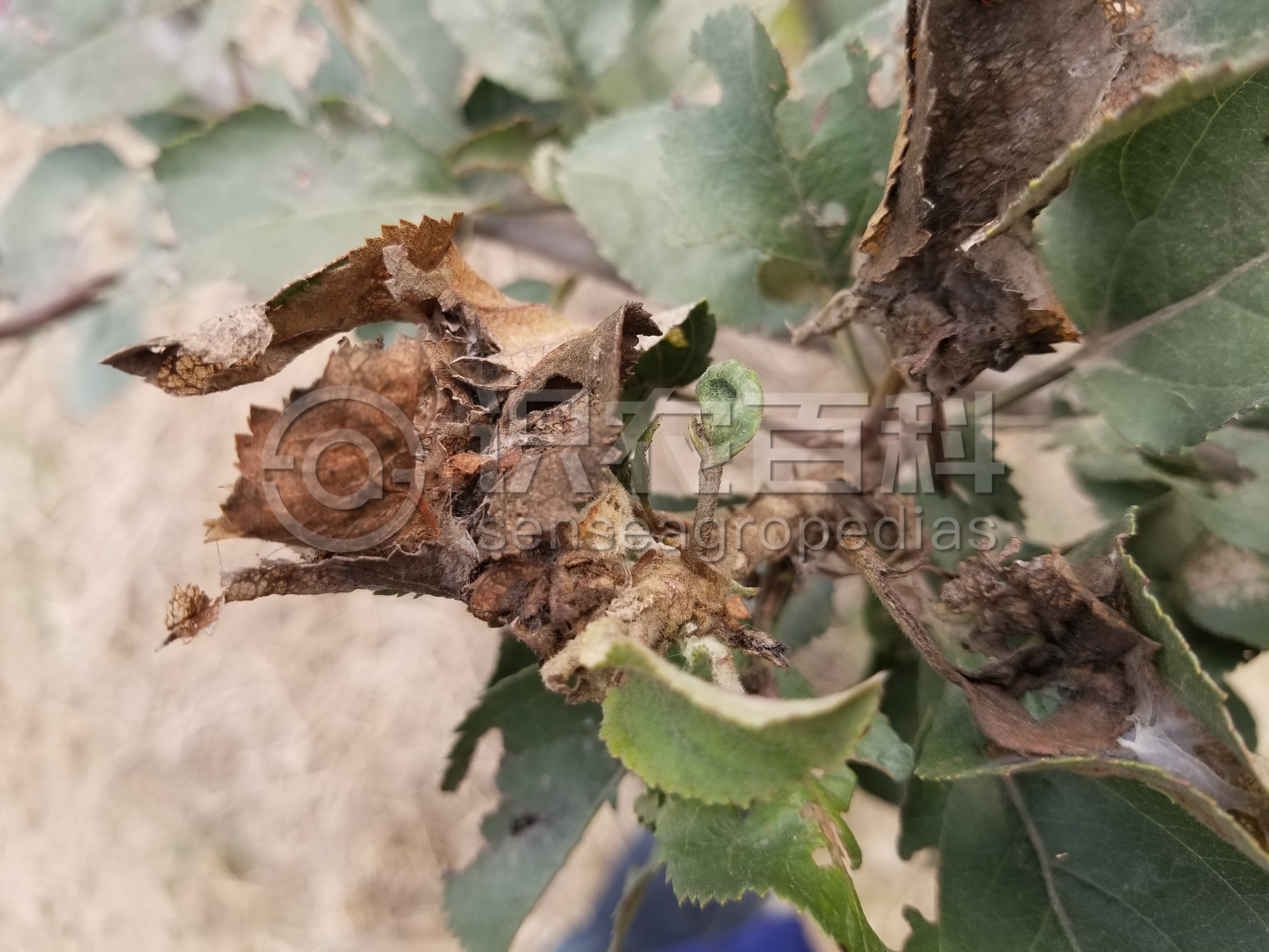 以2~3龄幼虫在顶梢卷叶里结茧越冬,被害顶梢叶苞枯死经久不落。越冬及初次虫源:以2~3龄幼虫在枝梢顶端卷叶团中越冬。早春苹果花芽展开时,出蛰的越冬幼虫为害顶芽,晚出蛰的向下为害侧芽。幼虫老熟后卷叶团作茧化蛹。
