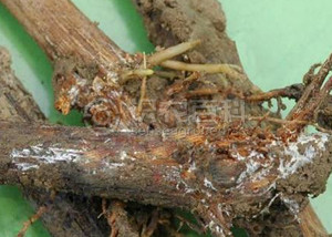 (2)药剂防治:在葡萄根区范围内浇灌药液,常用药剂50%多菌灵可湿性粉剂600~800倍液。