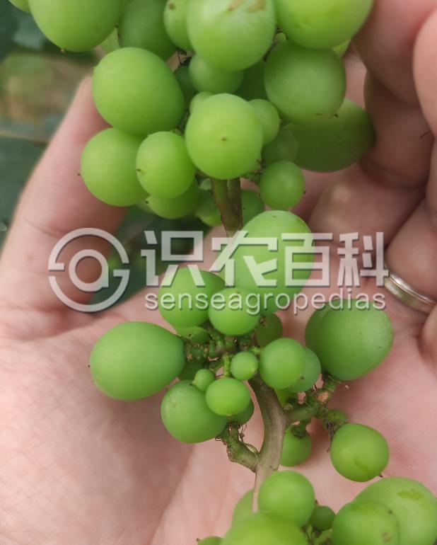 葡萄缺锌时主要表现为枝条下部叶片常有斑纹或黄化,顶部叶片狭小。葡萄缺锌时枝条纤细,节间缩短,失绿。有的葡萄品种表现为果穗松散,少籽或无籽,颗粒小,有大小粒的现象,严重影响葡萄的卖相