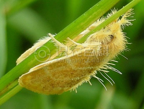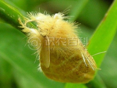 (4)蛹:圆锥形,色浅,有光泽。(5)茧:黄褐色,丝质,有鳞毛。