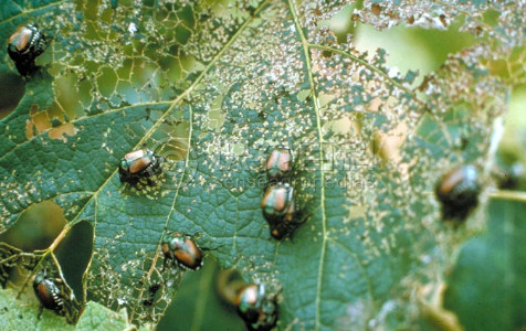 成虫食叶成不规则缺刻或孔洞,严重的仅残留叶脉,有时食害花或果实;幼虫为害地下组织。