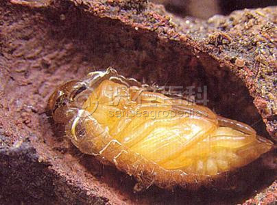 (4)蛹:长11.0~12.0mm,前圆后尖,乳黄或黄褐色。腹末端有褐色尾刺。