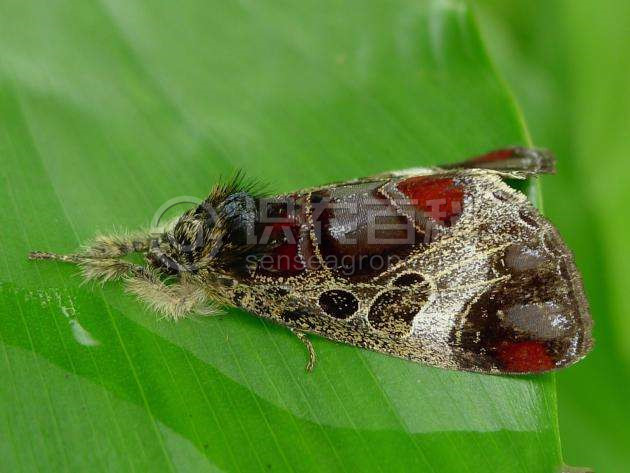 (1)成虫:体长18~20mm,翅展44~47mm,头胸部紫棕色,腹部杏黄色,背面中央有1纵列棕色毛簇达第7腹节后缘。前翅灰黄色带紫棕色散点,前缘色稍浓,后缘及外线以外暗紫色,其上带有银灰色细纹,外线经内的后缘部分色浓。