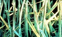 小麦缺磷时苗红,叶片暗绿,带紫红色,无光泽,植株细微,分蘖少,次生根很少,茎基部呈紫色。前期成长阻滞,呈现缩苗。冬前返青期叶尖紫红色,抽穗成熟推迟。穗小粒少,籽粒不满,千粒重低。一般植株长相衰弱,叶片上现紫红色,叶鞘上呈条状紫红色,长势慢,分蘖弱且少。
