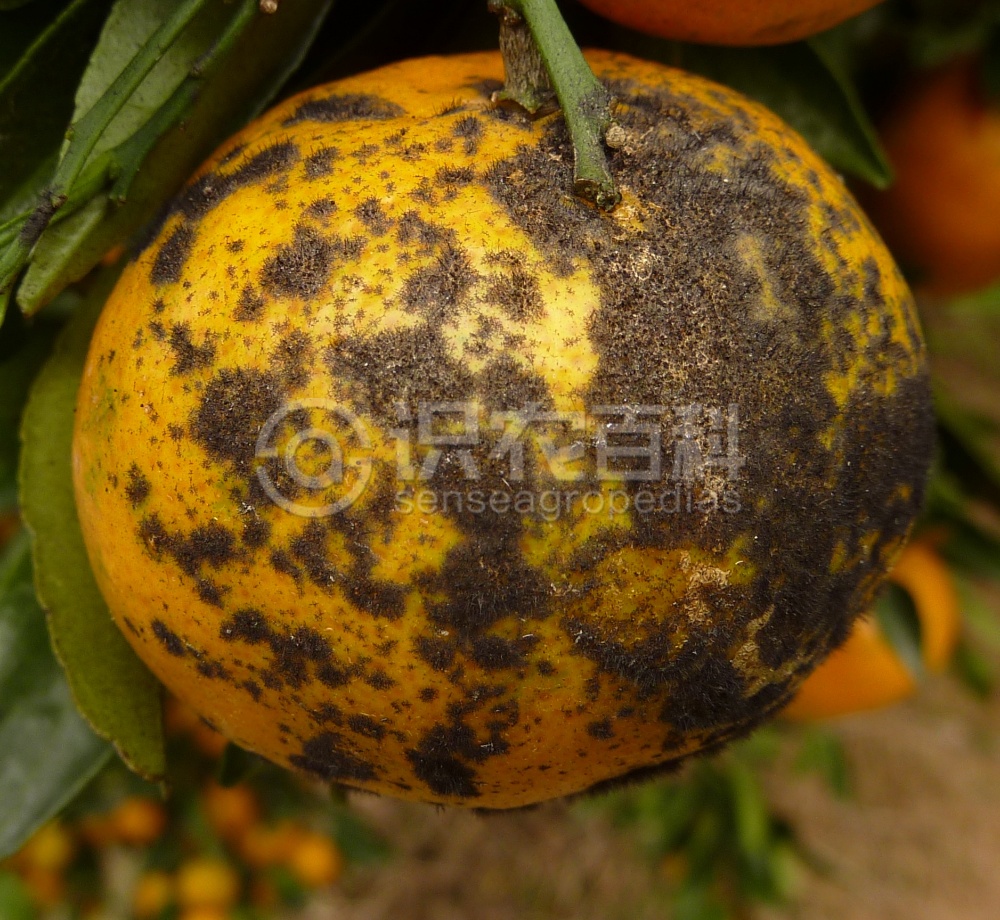 主要为害叶片、枝梢及果实。发病初期病部生一层暗褐色小霉点,后逐渐扩大,直至形成绒毛状黑色或暗褐色霉层,并散生黑色小点刻。