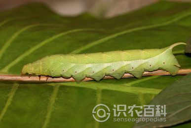 (2)幼虫。幼虫白天静止,夜晚取食叶片,受触动时从口器中分泌出绿水。