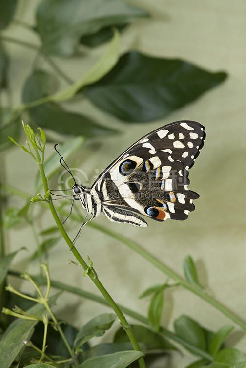 (1)成虫:体长32mm,翅展92mm翅面黑色,斑点黄色,后翅肛角附近饰有半月形橙红色斑1个,前角内方有蓝色半圆形斑1个翅背黑色,亦布满黄色大斑。