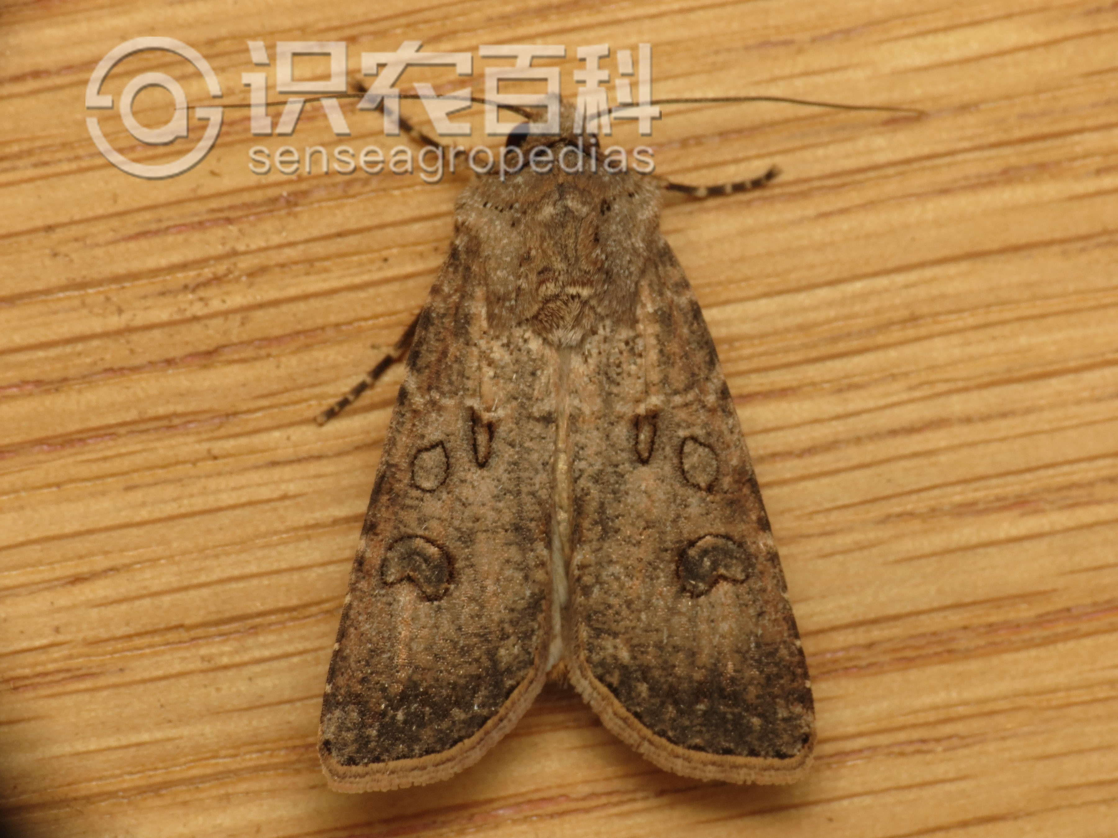 黄地老虎,初产乳白色,半球形,直径0.5mm,卵壳表面有纵脊纹,以后渐现淡红色玻纹,孵化前变为黑色。幼虫与小地老虎相似,其区别为:老熟幼虫体长33~43毫米,体黄褐色,体表颗粒不明显,有光泽,多皱纹。腹部背面各节有4个毛片,前方2个与后方2个大小相似。臀板中央有黄色纵纹,两侧各有1个黄褐色大斑。腹足趾钩12~21个。蛹体长16~19毫米,红褐色,腹部末节有臀剌1对,腹部背面第5~7节刻点小而多。