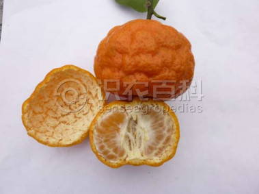 水纹病果又称为果皮内裂果,为柑橘生理性病害,主要发生在宽皮柑橘类。水纹病果不耐贮藏,易腐烂;表现在柑橘果实内皮层不规则状龟裂,对应的外皮层凹陷,形状如水纹线。