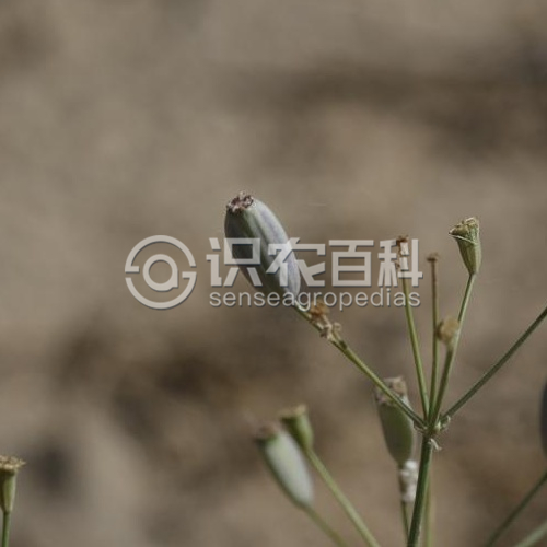 多年生章本,高30-60厘米,植株被密集的短柔毛,蓝绿色。根圆柱形,粗达8毫米,根颈上残存有枯萎的棕黄色叶鞘纤维。茎细,单一,从下部向上分枝成伞房状,二至三回分枝,下部枝互生,上部枝对生或轮生,枝上的小枝互生或对生。基生叶莲座状,有短柄,柄的基部扩展成鞘;叶片轮廓为广卵形至三角形,二至三回羽状全裂,末回裂片长椭圆形或广椭圆形,再羽状深裂,小裂片楔形至倒卵形,长1-3毫米,宽1-2毫米,常3裂,形似角状齿,顶端具细尖,被密集的短柔毛,灰蓝色,肥厚,不早枯;茎生叶少,向上简化,叶片一至二回羽状全裂,裂片细长,至上部无叶片,叶鞘披针形,草质,早枯萎。复伞形花序生于茎、枝和小枝顶端,直径4-12厘米,至果期达25厘米,总苞片缺或有1-3片,锥形;伞辐4-15,开展,不等长;无侧生花序;小伞形花序有花5-12,小总苞片3-5,线状披针形,不等长;萼齿卵形;花瓣黄色,椭圆形或广椭圆形,顶端渐尖,向内弯曲,沿中脉稍凹入,长2.5-3毫米;花柱基扁圆锥形,边缘增宽,花柱延长,柱头增粗。分生果广椭圆形,背腹扁压,果棱突起,长10-15毫米,宽4-6毫米。果梗不等长,长可达3厘米;每棱槽中有油管1,合生面油管2。花期5-6月,果期6-7月。