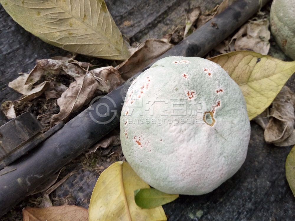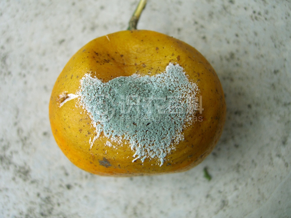 可引起储运期间果实腐烂;发病初期,果面水渍状褪色、果皮软化,用手轻压极易破裂;而后在病斑表面中央长出许多气生菌丝,形成一层厚的白色霉状物,并迅速扩展成白色近圆形霉斑;接着从霉斑中部长出青色或绿色粉状物,即分生孢子梗及分生孢子。因外缘由菌丝组成的白色霉斑扩展侵染快,青、绿色粉状毒生长慢,所以在后者外围通常留有一圈白色的菌丝环。病部发展很快,几天内便可扩展到全果湿腐。