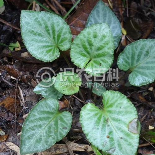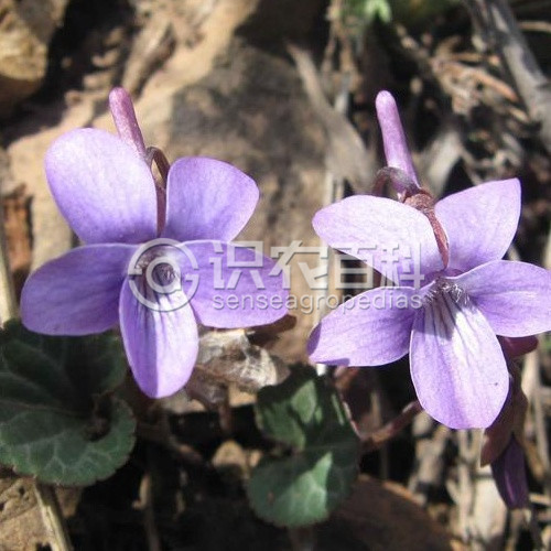多年生草本,无地上茎,高3-12厘米。根状茎通常较短而细,长4-15毫米,节密生,具数条淡褐色或近白色长根。叶均基生,呈莲座状,叶片圆形或圆卵形,长1.2-5厘米,宽1-4.5厘米,先端圆形或钝,基部明显呈心形,边缘具平而圆的钝齿,上面暗绿色或绿色,沿叶脉有明显的白色斑纹,下面通常稍带紫红色,两面通常密被短粗毛,有时毛较稀疏或近无毛;叶柄长短不一,长1-7厘米,上部有极狭的翅或无翅,被短粗毛或近无毛;托叶淡绿色或苍白色,近膜质,2/3与叶柄合生,离生部分披针形,先端渐尖,边缘疏生流苏状腺齿。花红紫色或暗紫色,下部通常色较淡,长1.2-2.2厘米;花梗长短不等,超出于叶或较叶稍短,通常带紫红色,有短毛或近无毛,在中部有2枚线形的小苞片;萼片通常带紫色,长圆状披针形或卵状披针形,长5-6毫米,先端尖,具狭膜质边缘并被缘毛,具3脉,基部附属物较短,长1-1.5毫米,末端截形或疏生浅齿,上面被粗短毛或无毛;花瓣倒卵形,长7-14毫米,侧方花瓣里面基部有须毛,下方花瓣基部白色并有堇色条纹,连距长1.2-2.2厘米;距筒状,长3-8毫米,粗或较细,末端钝,直或稍向上弯;雄蕊的花药及药隔顶端附属物均各长约2毫米,下方2枚雄蕊的距细而长,长可达4毫米,粗约0.3毫米;子房近球形,通常有粗短毛,或近无毛,花柱棍棒状,基部稍膝曲,向上渐增粗,柱头两侧及后方明显增厚成直伸的缘边,前方有明显的短喙,喙端具向上开口的柱头孔。蒴果椭圆形,长约7毫米,无毛或疏生短毛;幼果球形通常被短粗毛。种子淡褐色,小形,长约1.5毫米,附属物短。花期4月下旬至8月,果期6-9月。