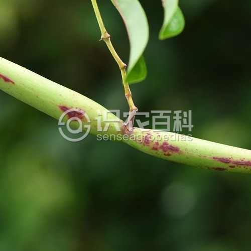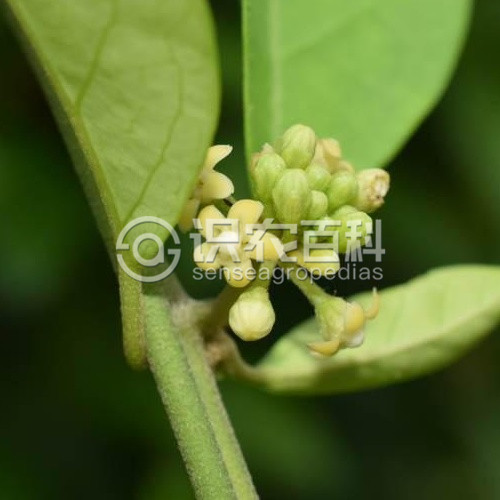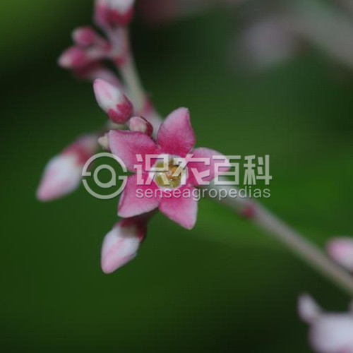 长达10米,具乳汁;茎皮深褐色,无明显皮孔,枝条上部淡绿色,下部灰褐色。叶纸质,阔椭圆形,长3-7厘米,宽1-4厘米,顶端急尖,基部楔形,两面无毛,叶背被白粉;侧脉每边4-6条,疏距。聚伞花序圆锥状,宽松展开,多歧,顶生,着花多朵;总花梗略具白粉和被短柔毛;花小,粉红色;花萼5深裂,外面被短柔毛,内面具有5枚小腺体,花萼裂片卵圆形,顶端钝;花冠近坛状,花冠筒喉部无副花冠,裂片卵圆形,向右覆盖;雄蕊5枚,着生于花冠筒基部,花丝短,花药披针状箭头形,基部具耳,顶端到达花冠筒喉部,腹面贴生于柱头上;花盘环状,全缘,围绕子房周围,比子房短;子房由2枚离生心皮所组成,被短柔毛,花柱丝状,柱头顶端2裂。蓇葖2枚,叉开成近一直线,圆筒状披针形,长达15厘米,外果皮有明显斑点;种子长圆形,顶端具白色绢质种毛。花期4-12月,果期7月-翌年1月。
