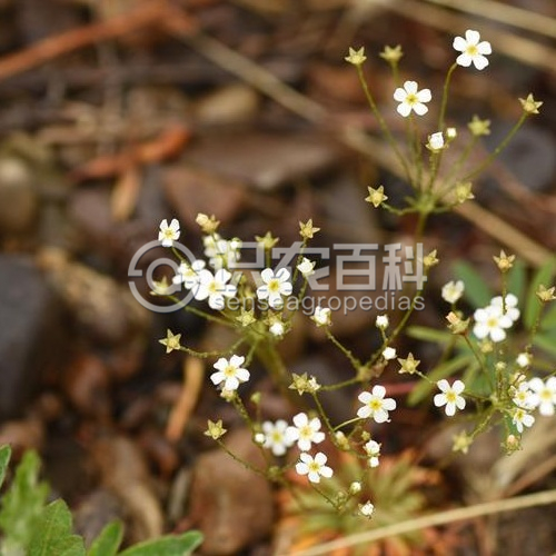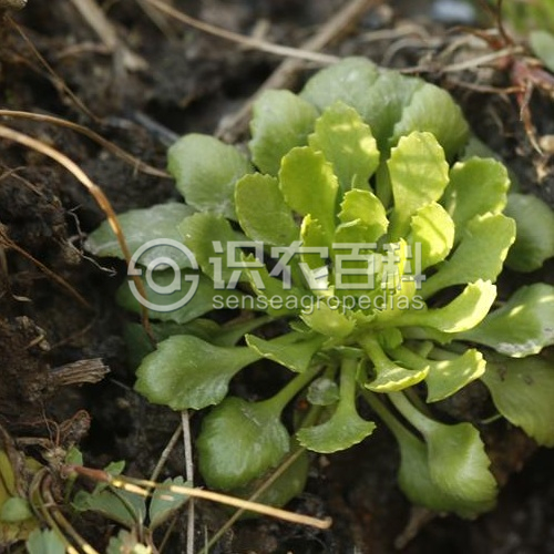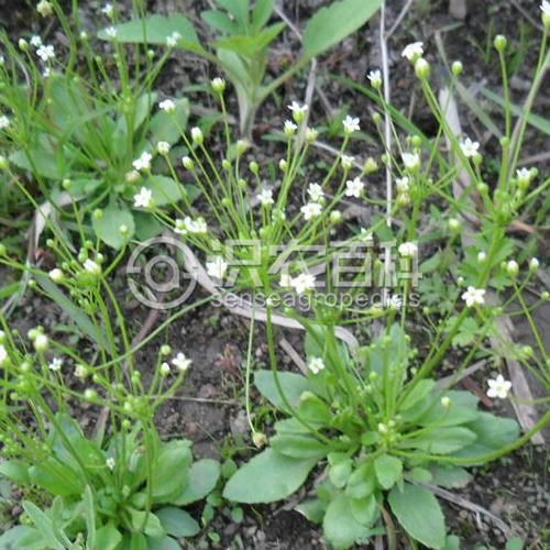 一年生草本。全株几无毛或部分有纤毛。主根不发达,具多数纤维状须根。莲座状叶丛单生,直径2-8crn;叶柄纤细,等长于或稍长于叶片;叶片长圆形至卵状长圆形,长6-25mm,先端钝或稍锐尖,基部短渐狭,边缘具稀疏小牙齿,无毛。花葶通常3至多枚自叶丛中抽出,高2.5-15cm,无毛或仅上部被稀疏短腺毛;伞形花序多花;苞片线状披针形,长约2mm;花梗丝状,长短不等,长2-7cm;花萼杯状,长2-2.5mm,5分裂,分裂约达中部,裂片三角形,先端锐尖,具极狭的膜质边缘,无毛或有时疏被腺毛;花冠白色,直径约3mm,筒部比花萼稍短,5裂,裂片长圆形;雄蕊着生在花冠筒内,花丝长约0.4mm,花药长圆状三角形,长约0.3mm,子房球形。蒴果近球形,直径约2mm,果皮近膜质,外被宿存花冠,5瓣裂。种细小,多数,棕褐色,近长圆形,直径约0.3mm,种皮有网纹。花期5-6月,果期6-9月。