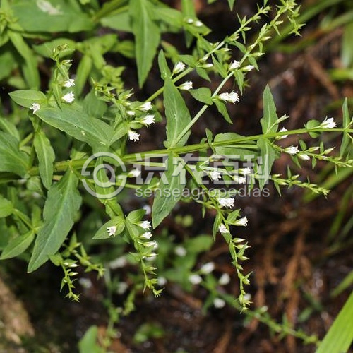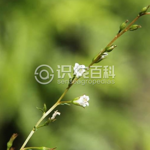 多年生草本,全体无毛。茎直立,高40-80厘米,四棱形,棱边有狭翅和黑色腺点,上部分枝。基生叶匙形,早凋,茎叶对生,无柄,叶片披针形或线状披针形,极少长圆状披针形,长4-13厘米,宽1-3厘米,先端稍锐尖或钝,基部钝或耳状半抱茎,两面密生黑色粒状腺点。总状花序生于茎端和枝端;苞片叶状,长于或近等长于花梗;花梗长3-5毫米;花萼4-5毫米,分裂近达基部,裂片线状披针形,背面有黑色腺条和腺点;花冠白色,长约7毫米,基部合生部分长约2.5毫米,裂片卵状长圆形;雄蕊与花冠近等长,花丝贴生至花冠的中部,分离部分长约3毫米;花药腺形,长约1.5毫米,药隔顶端具胼低状尖头;花粉粒具3孔沟,长球形 [(27.5-31) × (18-22.5)微米],表面近于平滑;子房无毛,花柱长约6毫米,柱头膨大。蒴果球形,直径约3毫米。花期5-7月;果期8-10月。