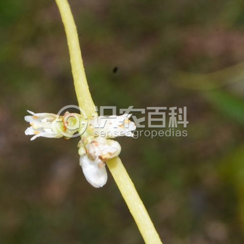 一年生寄生草本。茎缠绕,带黄色或带红色,纤细,毛发状,直径不超过1毫米,无叶。花序侧生,少花或多花密集成团伞花序,花梗长1.5毫米或更短;花萼杯状,中部以下连合,裂片4-5,有时不等大,三角状卵形,长1.5毫米;花冠淡红色,壶形,长2.5-3毫米,裂片4-5,三角状卵形,通常向外反折,宿存;雄蕊着生花冠凹缺微下处,花药卵圆形,花丝比花药长;鳞片薄,倒卵形,着生花冠基部之上花丝之下,顶端2裂或不分裂,边缘流苏较少;子房近球形,花柱2,柱头棒状,下弯或叉开,与花柱近等长,花柱和柱头短于子房。蒴果近球形,直径约3毫米,上部覆以凋存的花冠,成熟时整齐周裂。种子通常4枚,淡褐色,椭圆形,长约1毫米,表面粗糙。