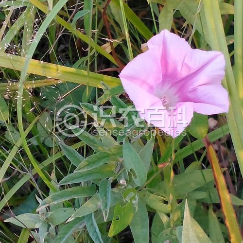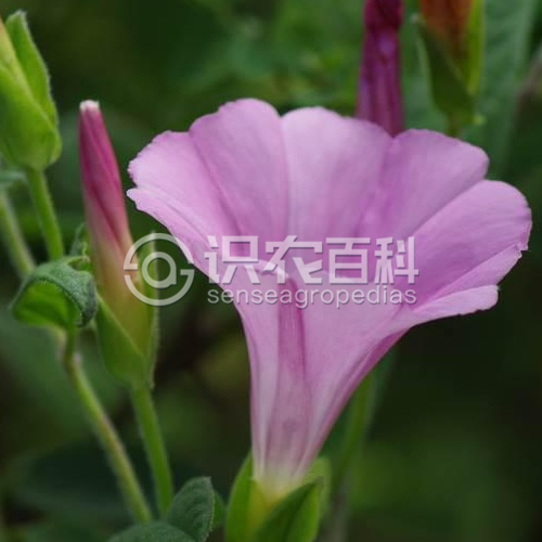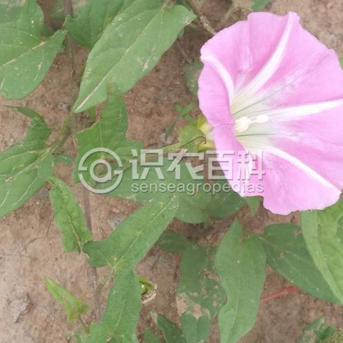 多年生草本,根细长。茎缠绕或下部直立,圆柱形,有细棱,密被灰白色或黄褐色长柔毛,有时毛较少。叶长圆形或长圆状线形,长4-10厘米,宽0.5-2.5厘米,顶端钝圆或锐尖,具小短尖头,基部圆形、截形或微呈戟形,全缘,两面被柔毛,通常背面沿中脉密被长柔毛,有时两面毛较少,叶脉在背面稍突起;叶柄长0.2-1.5(-2)厘米,毛被同茎。花腋生,单一,花梗短于叶,密被柔毛;苞片卵形,长1.5-2.2厘米,顶端钝,具小短尖头,外面密被褐黄色短柔毛,有时被毛较少,具有如叶脉的中脉和侧脉;萼片近相等,长0.9-1.2厘米,长圆状卵形,上部具黄褐色缘毛;花冠淡红色,漏斗状,长4-5厘米,冠檐于瓣中带顶端被黄褐色短柔毛;雄蕊花丝基部扩大,被小鳞毛;子房无毛,2室,每室2胚珠,柱头2裂,裂片长圆形,扁平。蒴果近球形,径约6毫米。种子卵圆形,无毛。