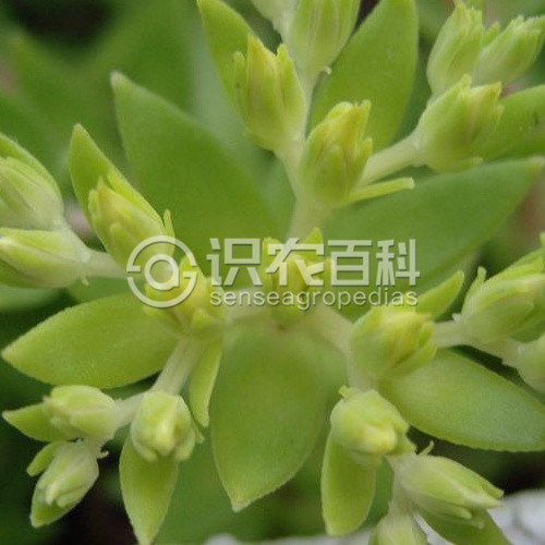 多年生肉质草本,茎匍匐生根。3叶轮生,倒披针形至矩形,顶端近急尖,基部有距,全缘,花散聚伞状,有3-5个分枝,花无梗;萼片5.披针形至矩圆形,基部无距,顶端稍钝,花瓣5,淡黄色,蓇葖果,花期4-5月,果期6-7月。