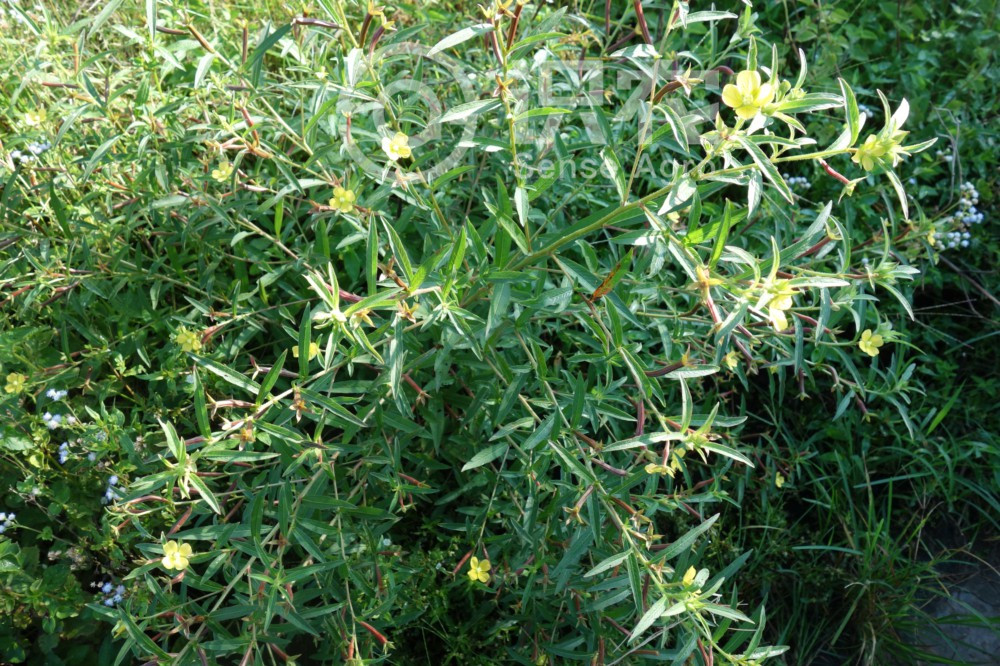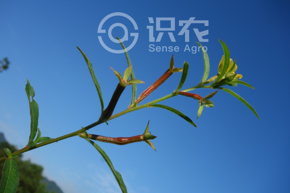 高50-200厘米,粗5-18毫米,多分枝,稍具纵棱,常被伸展的黄褐色粗毛。叶披针形至线状披针形,长4-12厘米,宽 0.5-2.5厘米,先端渐尖或长渐尖,基部渐狭,侧脉每侧9-17条,在近边缘处环结,两面被黄褐色粗毛,边缘具毛;叶柄长至5毫米,或无柄;托叶小,三角状卵形,长至3毫米,或近退化。萼片4,卵形,长6-9毫米,宽3-5毫米,先端渐尖,基出3脉,两面被粗毛;花瓣黄色,倒卵状楔星,长7-14毫米,宽6-10毫米,先端钝圆形或微凹,基部楔形,具侧脉4-5对;雄蕊8,花丝长2-3毫米;花药宽长圆形,长0.8-1.5毫米;开花时以四合花粉授于柱头上;花柱与雄蕊,尤与内轮的雄蕊近等长,较外轮的稍短;柱头近头状,浅4裂,径1.2-2毫米;花盘隆起,基部围以白毛,子房圆柱状,密被粗毛。蒴果圆柱状,具8条棱,绿色至紫红色,长2.5-3.5厘米,粗3-5毫米,被粗毛,熟时迅速并不规则地室背开裂;果梗长3-10毫米。种子每室多列,离生,近球状或倒卵状,一侧稍内陷,径0.6-0.7毫米,种脊明显,与种子近等长,表面具横条纹。花期6-8月,果期8-11月。