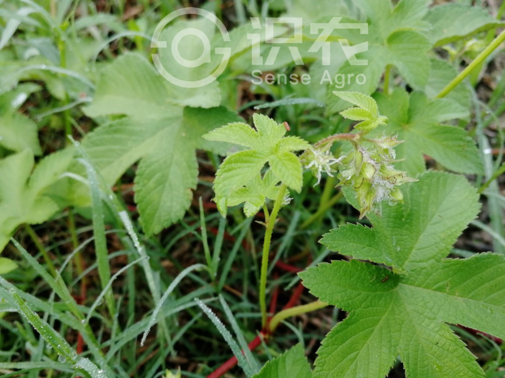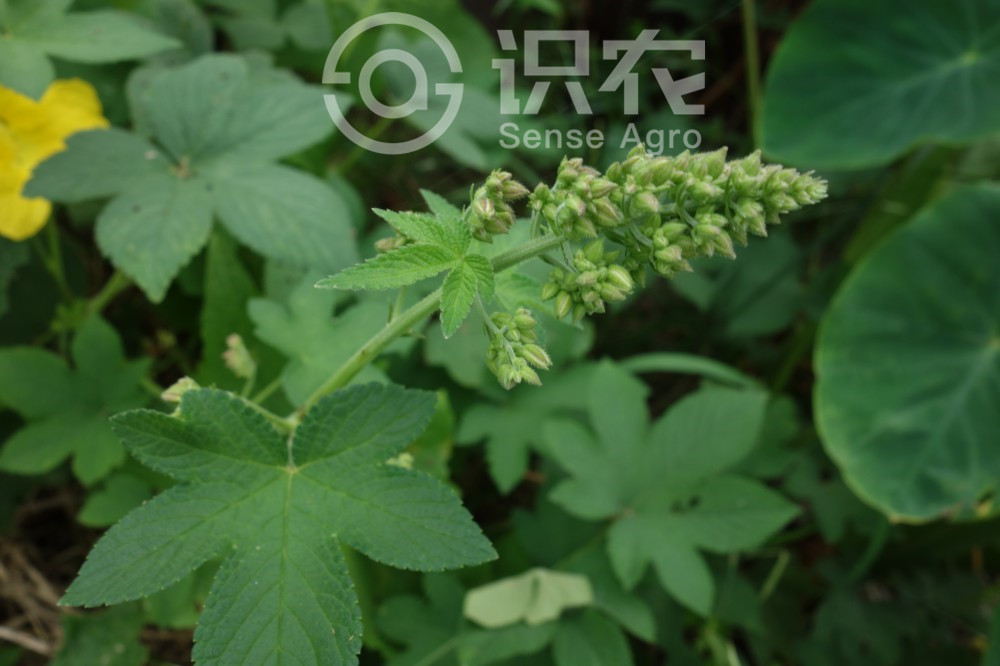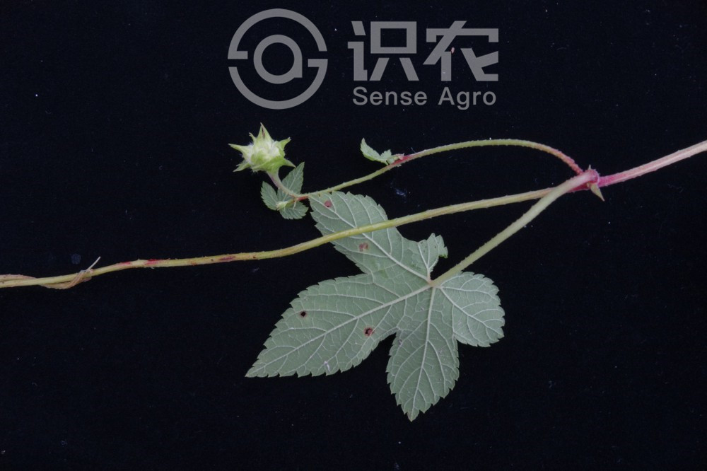 茎、枝、叶柄均具倒钩刺。叶纸质,肾状五角形,掌状5-7深裂稀为3裂,长宽约7-10厘米,基部心脏形,表面粗糙,疏生糙伏毛,背面有柔毛和黄色腺体,裂片卵状三角形,边缘具锯齿;叶柄长5-10厘米。雄花小,黄绿色,圆锥花序,长约15-25厘米;雌花序球果状,径约5毫米,苞片纸质,三角形,顶端渐尖,具白色绒毛;子房为苞片包围,柱头2,伸出苞片外。瘦果成熟时露出苞片外。花期春夏,果期秋季。