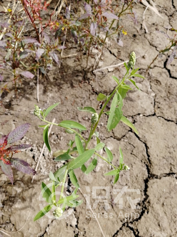 植株全体无毛。茎直立,高20-70厘米,直径可达1厘米,通常多分枝。叶互生,有长达1厘米的叶柄,叶片长椭圆形,长椭圆状披针形或卵状披针形,长2-9厘米,宽0.5-2厘米,全缘,上面绿色,下面灰色或绿色。穗状花序与叶对生,或生于枝顶,长1-4厘米。苞片卵形,顶端渐尖,小;小苞片宽条形而小;花小,长不过2毫米;花萼裂片卵圆形;花冠白色,长1.5毫米,浅裂,裂片开展。蒴果直径2-4毫米。种子棕黄色,长0.5毫米。无固定花果期。