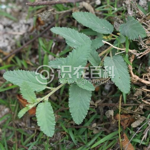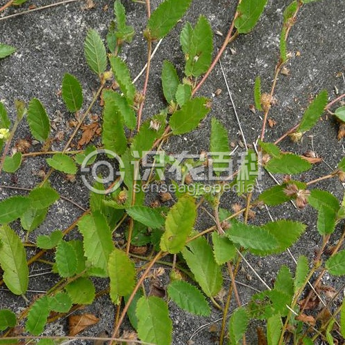 高达1米,多分枝,小枝密被短柔毛。叶卵形或长椭圆状卵 形,长2.5-4.5厘米,宽1.5-3厘米,顶端钝,基部圆形或浅心形,边缘有小齿,两面均密被短柔毛;叶柄长0.5-1厘米。聚伞花序腋生,头状,近于无轴或有长约1.5厘米的花序 轴;小苞片狭披针形,长约4毫米;萼筒状,5裂,长3-4毫米,裂片三角形,远比萼筒长; 花瓣5片,淡黄色,匙形,顶端截形,比萼略长;雄蕊5枚,花丝合生成筒状,包围着雌蕊;子房无柄,被短柔毛,花柱偏生,柱头流苏状。蒴果小,二瓣裂,倒卵形,长约3毫米,被毛,为宿存的萼所包围,内有种子1个;种子倒卵形,很小。花期夏秋。