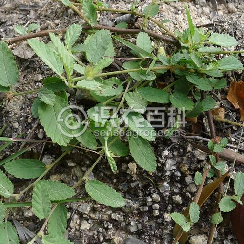 蛇婆子(学名:Waltheria indica L.),双子叶植物纲,锦葵目,梧桐科,蛇婆子属略直立或匍匐状半灌木。