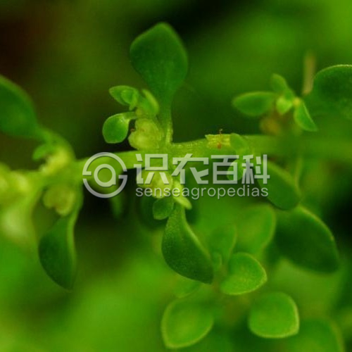叶柄长1-1.5毫米;叶片延展,长1.5-4.5毫米,宽1-2.5毫米,表面有光洁;叶脉单一,通常1主脉和1对二级脉,偶尔二级脉内和二级脉外有短脉。花单生,最常见的是一朵雌花和一朵雄花在叶腋相对;无苞片;花柱长0.28-0.33毫米;花丝长0.2-0.4毫米;花药长0.1-0.2毫米,宽0.1-0.3毫米;花粉约13x15.4微米。果长0.7-1毫米,宽0.7-1毫米,棕色至成熟时黑色,往基部渐狭;具翅。