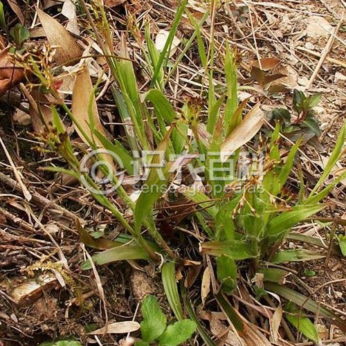 (4)毫米,叶鞘口及叶片边缘有白色长毛,叶片先端钝且为硬质、呈 胼胝体状。 聚伞花序由5至10余个头状花序组成,花序枝长短不等,每个头状花序具数朵至十余朵花,花序最下方的苞片叶状,花下方的小苞片广卵形, 白膜质, 花被片6,披针形,2轮,内外花被片近等长,长2.5-3