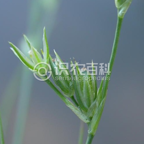 一年生草本,高4-20(-30)厘米,有多数细弱、浅褐色须根。茎丛生,细弱,直立或斜升,有时稍下弯,基部常红褐色。叶基生和茎生;茎生叶常1枚;叶片线形,扁平,长1-13厘米,宽约1毫米,顶端尖;叶鞘具膜质边缘,无叶耳。花序呈二歧聚伞状,或排列成圆锥状,生于茎顶,约占整个植株的1/4到4/5,花序分枝细弱而微弯;叶状总苞片长1-9厘米,常短于花序;花排列疏松,很少密集,具花梗和小苞片;小苞片2-3枚,三角状卵形,膜质,长1.3-2.5毫米,宽1.2-2.2毫米;花被片披针形,外轮者长3.2-6毫米,宽1-1.8毫米,背部中间绿色,边缘宽膜质,白色,顶端锐尖,内轮者稍短,几乎全为膜质,顶端稍尖;雄蕊6枚,长为花被的1/3到1/2;花药长圆形,淡黄色;花丝丝状;雌蕊具短花柱;柱头3,外向弯曲,长0.5-0.8毫米。蒴果三棱状椭圆形,黄褐色,长3-4(-5)毫米,顶端稍钝,3室。种子椭圆形,两端细尖,黄褐色,有纵纹,长0.4-0.6毫米。花常闭花受精。染色体2n=100-110。花期5-7月,果期6-9月。