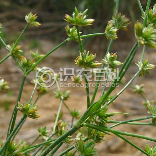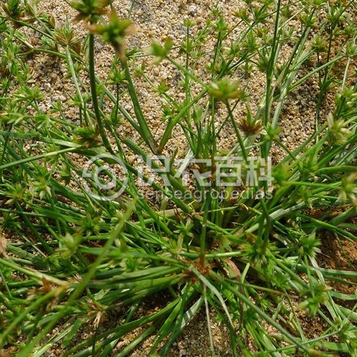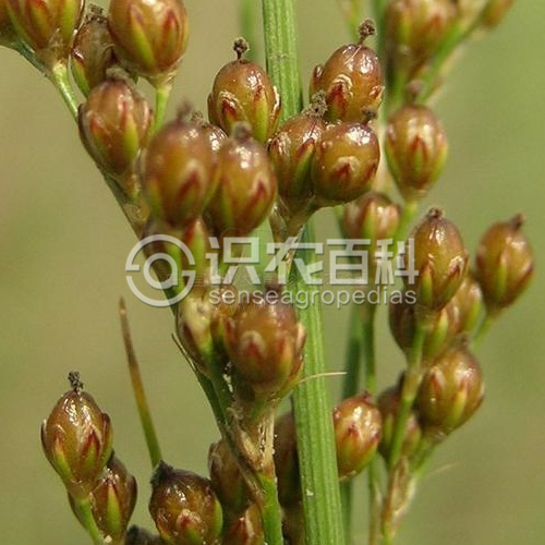 多年生草本,高约(8-)15-40(-70)厘米;根状茎粗壮横走,褐色,具黄褐色须根。茎丛生,直立,圆柱形或稍扁,绿色,直径0.5-1.5毫米。叶基生和茎生;低出叶鞘状,长1.5-3厘米,淡褐色;基生叶2-3枚;叶片线形,长3-15厘米,宽0.5-1毫米;茎生叶1-2枚;叶片线形,扁平,长10-15(-20)厘米;叶鞘长2-9厘米,松弛抱茎;叶耳圆形。顶生复聚伞花序;叶状总苞片通常1枚,线形,常超出花序;从总苞叶腋中发出多个花序分枝,花序分枝纤细,长短不一,长者达4-6厘米,顶端1-2回或多回分枝,有时花序延伸长达13厘米;花单生,彼此分离;小苞片2枚,宽卵形,长约1毫米,顶端钝,膜质;花被片披针形或长圆状披针形,长1.8-2.6毫米,宽0.9-1.1毫米,顶端钝圆,外轮者稍长于内轮,较窄,内轮者具宽膜质边缘,背部淡绿色,顶端和边缘褐色;雄蕊6枚;花药长圆形,基部略成箭形,长0.8-1毫米,黄色;花丝长0.6-0.8毫米;子房长圆形,长约1.5毫米;花柱很短;柱头3分叉,长约1.5毫米。蒴果卵球形,长约2.5毫米,超出花被,上端钝,具短尖头,有3个隔膜,成熟时褐色、光亮。种子斜卵形,长约0.4毫米,表面具纵纹,成熟时褐色。花期5-7月,果期6-8月。