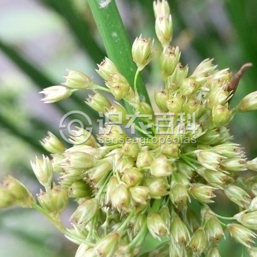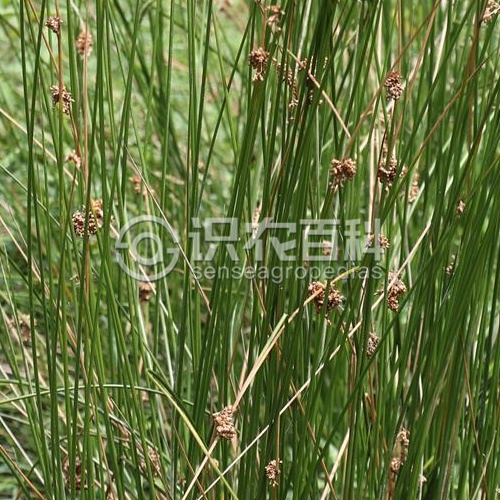 (1-)1.5-3(-4)毫米,茎内充满白色的髓心。叶全部为低出叶,呈鞘状或鳞片状,包围在茎的基部,长1-22厘米,基部红褐至黑褐色;叶片退化为刺芒状。聚伞花序假侧生,含多花,排列紧密或疏散;总苞片圆柱形,生于顶端,似茎的延伸,直立,长5-28厘米,顶端尖锐;小苞片2枚,宽卵形,膜质,顶端尖;花淡绿色;花被片线状披针形,长2-12.7毫米,宽约0.8毫米,顶端锐尖,背脊增厚突出,黄绿色,边缘膜质,外轮者稍长于内轮;雄蕊3枚(偶有6枚),长约为花被片的2/3;花药长圆形,黄色,长约0.7毫米,稍短于花丝;雌蕊具3室子房;花柱极短;柱头3分叉,长约1毫米。蒴果长圆形或卵形,长约2.8毫米,顶端钝或微凹,黄褐色。种子卵状长圆形,长0.5-0.6毫米,黄褐色。染色体:2n=40,42。花期4-7月,果期6-9月。