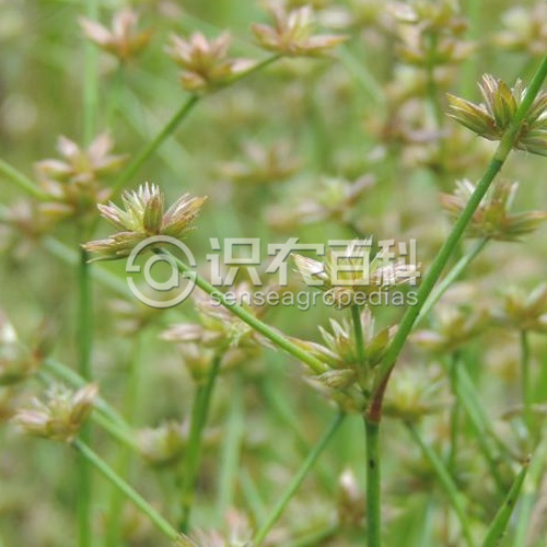 多年生草本,高17-65厘米,具根状茎和多数黄褐色须根。茎丛生,直立或斜上,有时平卧,圆柱形,或稍扁,直径1-3毫米,下部节上有时生不定根。叶基生和茎生,短于花序;基生叶少;茎生叶2-4枚;叶片线形通常扁平,长10-25厘米,宽2-4毫米,顶端渐尖,具不完全横隔,绿色;叶鞘边缘膜质,长2-10厘米,有时带红褐色;叶耳稍钝。花序由5-20(-30)个头状花序组成,排列成顶生复聚伞花序,花序常分枝,具长短不等的花序梗;头状花序半球形至近圆球形,直径7-10毫米,有