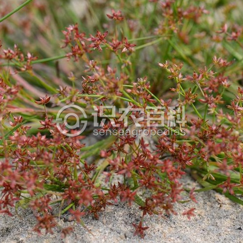 (4-)8-15(-20)朵花;叶状总苞片常1枚,线形,短于花序;苞片多枚,宽卵形或卵状披针形,长2-2.5毫米,顶端锐尖或尾尖,膜质,背部中央有1脉;花具短梗;花被片线状披针形至狭披针形,长3.5-4毫米,宽约1毫米,内外轮等长或内轮者稍短,顶端尖锐,背面有纵脉,边缘狭膜质,绿色或淡红褐色;雄蕊通常3枚,花药线形,长0.9-1毫米,淡黄色;花丝长1.2-1.4毫米;花柱甚短;柱头3分叉,细长,常弯曲。蒴果三棱状圆锥形,长3.8-4.5毫米,顶端具短尖头,1室,淡褐色或黄褐色。种子长卵形,长0.6-0.8毫米,具短小尖头,蜡黄色,表面具纵条纹及细微横纹。花期3-6月,果期7-8月。