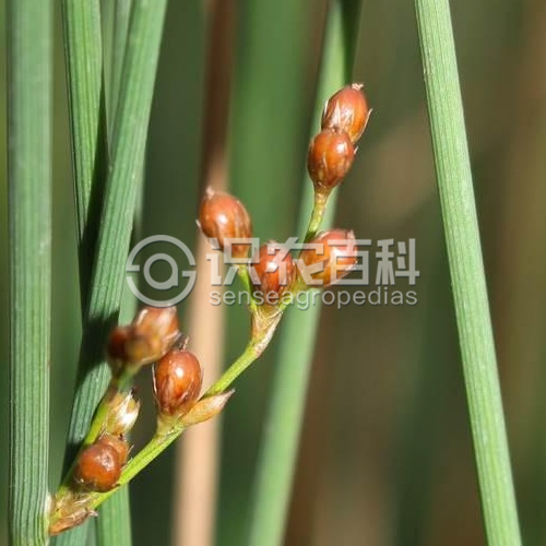 多年生草本,高25-65厘米;根状茎短而横走,具黄褐色稍粗的须根。茎丛生,直立,圆柱形,有较深而明显的纵沟,直径1-1.5毫米,茎内充满白色髓心。叶全部为低出叶,呈鞘状或鳞片状,包围在茎的基部,长1-9.5厘米,基部红褐色至棕褐色;叶片退化为刺芒状。聚伞花序假侧生;花多朵排列紧密或疏散;总苞片生于顶端,圆柱形,似茎的延伸,长5-15厘米,顶端尖锐;小苞片2枚,三角状卵形,膜质,长1-1.2毫米,宽约0.9毫米;花淡绿色;花被片卵状披针形,长2-3毫米,宽约0.9毫米,顶端锐尖,边缘宽膜质,内轮与外轮者等长;雄蕊3枚,比花被片稍短;花药长圆形,黄色,长约0.8毫米,比花丝短;子房1室(三隔膜发育不完全),侧膜胎座呈半月形;花柱极短;柱头3分叉,长约0.8毫米。蒴果通常卵形,比花被片长,顶端钝,成熟时黄褐色至棕褐色。种子斜倒卵形,长0.5-0.7毫米,棕褐色。花期5-7月,果期6-9月。