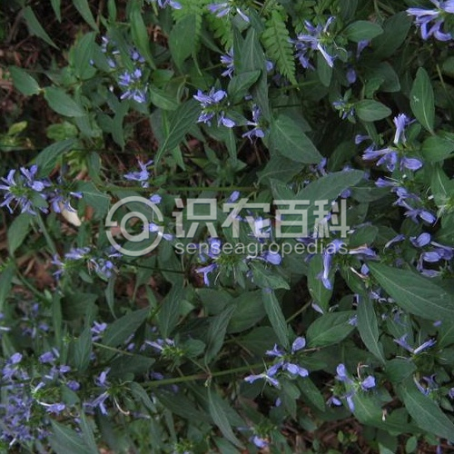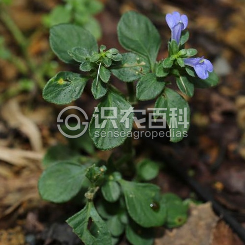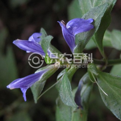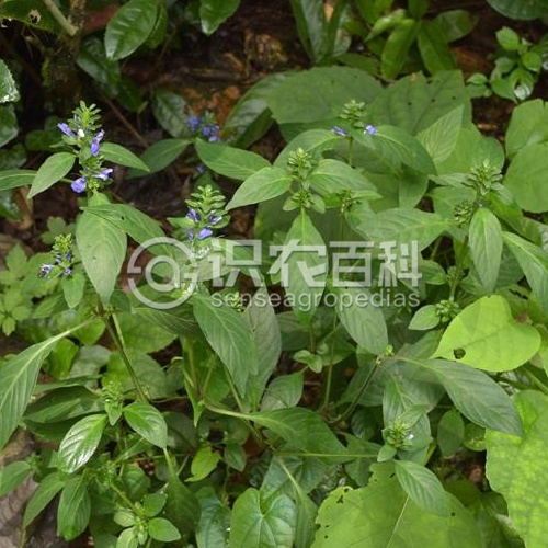 草本,基部匍匐,高达70厘米。茎纤细,4棱,具沟糟。叶具柄,柄长5-15毫米,叶片卵形,椭圆形至椭圆状矩圆形,长2.5-9厘米,宽1.8-3厘米,顶端尖至近渐尖,基部宽楔形,侧脉每边5-6条。穗状花序较疏松,长1-3 (-7)厘米,宽约1.5厘米,顶生或生上部叶腋,具总花梗,长1-2厘米,小穗在花序轴上互生,密集;苞片椭圆形至匙形,长7-8毫米,疏生短柔毛,覆瓦状排列;小苞片2,椭圆形,长约5毫米,具膜质边缘和睫毛;花萼裂片5,条状披针形,长3-4毫米;花冠淡紫蓝色,长约1.5厘米,2唇形,上唇三角形,下唇3裂,外面被白色柔毛;雄蕊2,药室不等高,下方1室具小矩。蒴果长约6毫米,开裂时胎座由蒴底弹起,种子4粒。