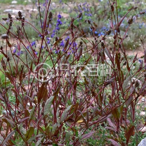 (10.5)厘米,宽(0.5)1-2.6厘米,中部叶最大,下部叶片上部最宽,匙形至倒卵状披针形,有略明显的宽扁柄状部,愈向茎的上部,叶片渐变为中部最宽至基部最宽,狭披针形至卵状披针形,由无明显的柄部至完全无柄,先端急尖至渐尖,基部由无耳(最下部的叶)至有耳抱茎而沿棱下延,边缘常有细小皮刺。花序长约0.7-2厘米,通常含4-12个小穗;穗轴被灰褐色至红褐色绒毛,结果时略延长;小穗含2-3花;苞片下部者较萼长,上部者与萼近等长或较短,通常宽卵形,先端渐尖,小苞片膜质,通常披针状长圆形,远较苞片为小;萼绿色,长4-4.5毫米,筒部具5棱角,先端有5枚与筒部等长的狭长三角形裂片,裂片两侧有具柄的腺;结果时,萼筒的棱脊上生出鸡冠状突起,萼也同时略增大而变硬;花冠淡蓝紫色,长5-6毫米,狭钟状,先端有5个卵状三角形裂片,裂片长约1毫米;雄蕊几与花冠筒部等长或略短,花药淡黄色,长约0.5毫米,花丝白色,长约3毫米;子房卵状,上端渐细成花柱。蒴果暗红褐色,有5条淡色条纹;种子红褐色,长达3.3毫米,径达1.7毫米。花期7-8月,果期7-9月。