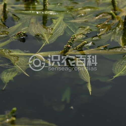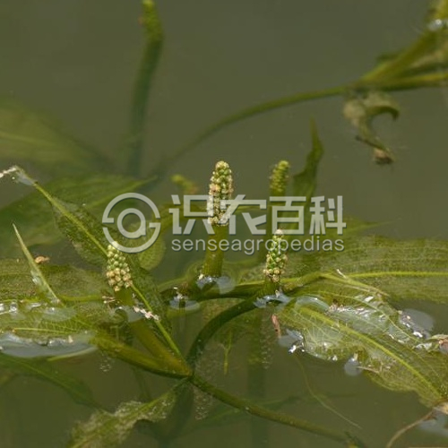 多年生沉水草本,具根茎。茎圆柱形,直径约2毫米,上部多分枝,节间较短,下部节间伸长,可达20余厘米。叶长椭圆形、卵状椭圆形至披针状椭圆形,无柄或具短柄,有时柄长可达2厘米;叶片长2-18厘米,宽0.8-3.5厘米,质薄,先端尖锐,常具0.5-2厘米长的芒状尖头,基部楔形,边缘浅波状,疏生细微锯齿;叶脉5-9条,中脉粗大而显著,侧脉细弱,与中脉平行,顶端连接,次级叶脉细弱,但清晰可见;托叶大而显著,绿色,通常不为膜质,与叶片离生,长1-5厘米,先端钝圆,常宿存。穗状花序顶生,具花多轮,密集;花序梗明显膨大呈棒状,较茎粗,长3-20厘米;花小,被片4,绿色;雌蕊4枚,离生。果实卵形,长约3毫米,背部3脊,中脊稍锐,侧脊不明显。花果期6-10月。2n=52。