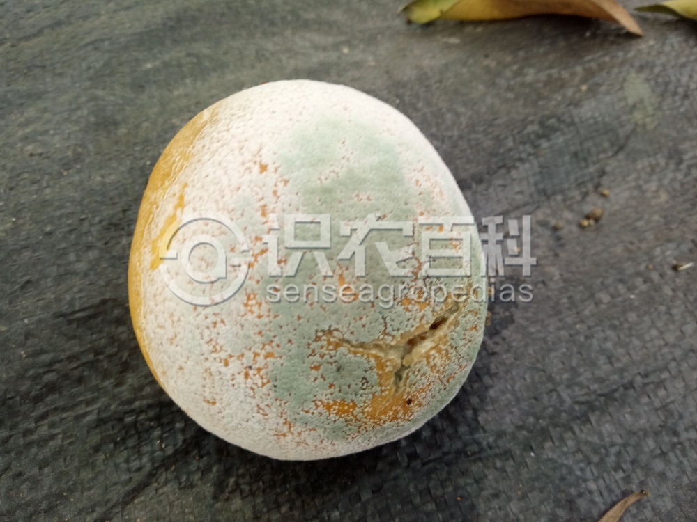 柑橘青霉病、绿霉病是果实储运期间普遍发生的病害,通常这两类病害可同时侵染,发病导致果实腐烂。绿霉病发病初期,果面出现水渍状淡褐色小圆斑,病部组织软腐,而后霉状物不断增厚并向周围扩大蔓延,中间的菌丝体渐转灰绿色或暗灰色,外缘可形成一圈白色菌丝环;病果有芳香味。青霉病发病初期,果皮软化,水渍状褪色;此后在病斑表面中央长出许多气生菌丝,形成一层厚的白色霉状物,并迅速扩展成白色近圆形霉斑;接着又从霉斑中部长出青色或绿色粉状物。