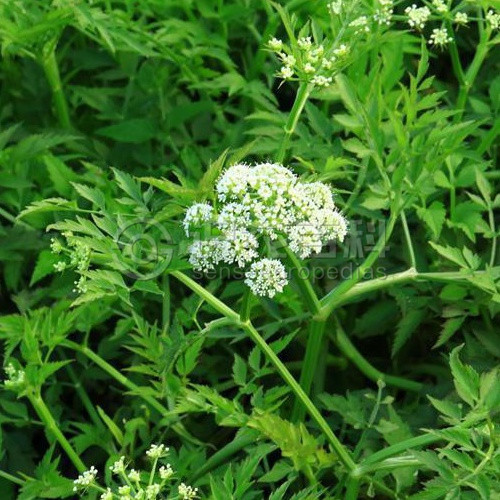 高15-80厘米,茎直立或基部匍匐。基生叶有柄,柄长达10厘米,基部有叶鞘;叶片轮廓三角形,1-2回羽状分裂,末回裂片卵形至菱状披针形,长2-5厘米,宽1-2厘米,边缘有牙齿或圆齿状锯齿;茎上部叶无柄,裂片和基生叶的裂片相似,较小。复伞形花序顶生,花序梗长2-16厘米;无总苞;伞辐6-16,不等长,长1-3厘米,直立和展开;小总苞片2-8,线形,长约2-4毫米;小伞形花序有花20余朵,花柄长2-4毫米;萼齿线状披针形,长与花柱基相等;花瓣白色,倒卵形,长1毫米,宽0.7毫米,有一长而内折的小舌片;花柱基圆锥形,花柱直立或两侧分开,长2毫米。果实近于四角状椭圆形或筒状长圆形,长2.5-3毫米,宽2毫米,侧棱较背棱和中棱隆起,木栓质,分生果横剖面近于五边状的半圆形;每棱槽内油管1,合生面油管2。花期6-7月,果期8-9月。